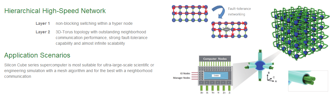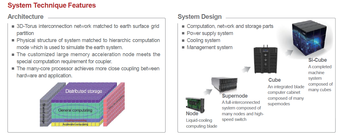 Silicon Cube(Earth System Numerical Simulator) series supercomputer leverages Sugon’s latest technologies in terms of computing, high-speed network, massive storage and liquid cooling. It is Sugon’s pathway to exascale computing.