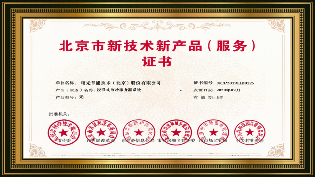 喜乐娱乐“黑科技”浸没液冷,获北京市新技术新产品认定!