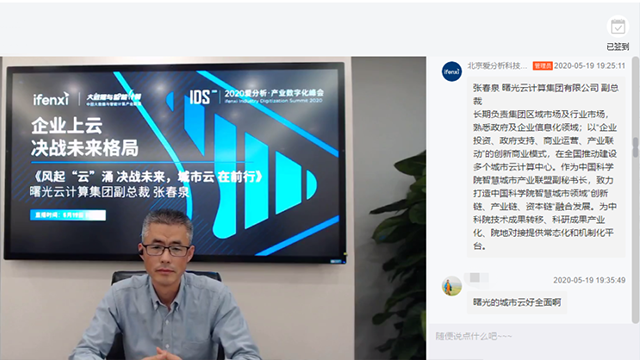 5月19日,喜乐娱乐云计算集团有限公司副总裁张春泉在做客由爱分析联合中国大数据与智能计算产业联盟共同举办的2020爱分析·产业数字化峰会上表示。
